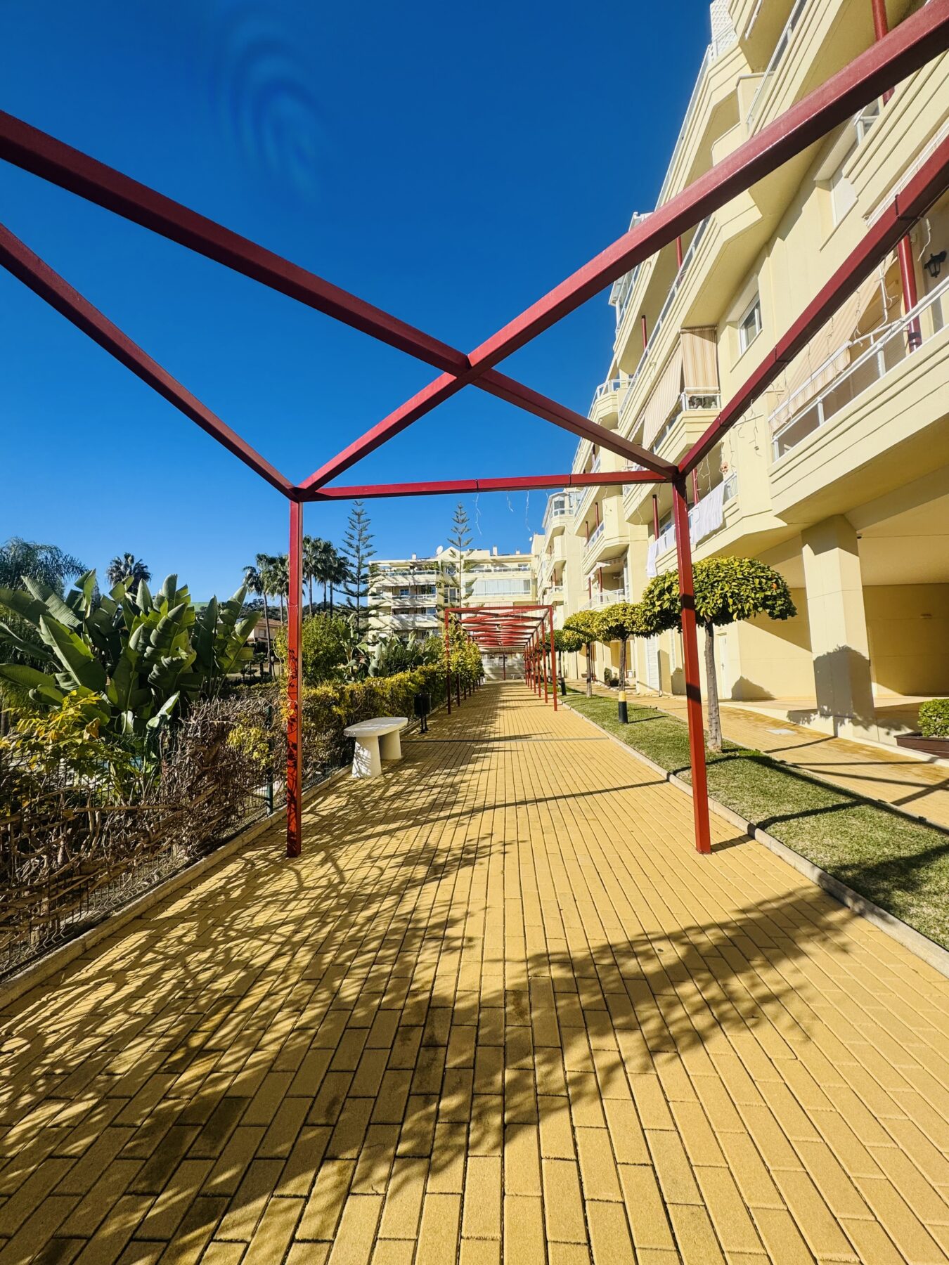 La vivienda dispone de 123 m² construidos, distribuidos en tres amplios dormitorios con armarios empotrados y dos baños completos, uno de ellos en suite. Sus techos altos y la orientación este–oeste aportan una gran sensación de amplitud y una excelente luminosidad natural durante todo el día.